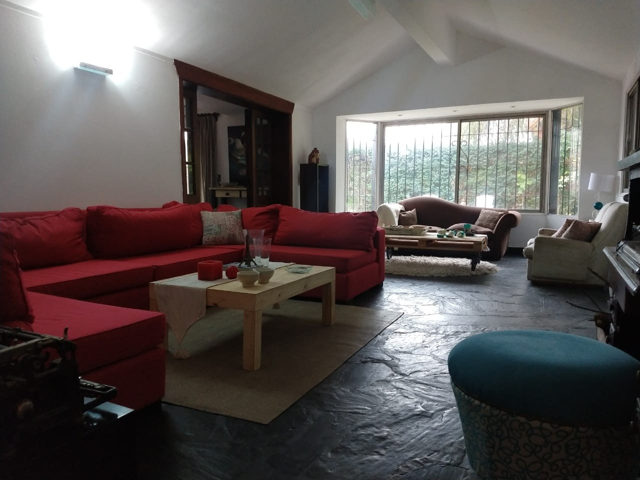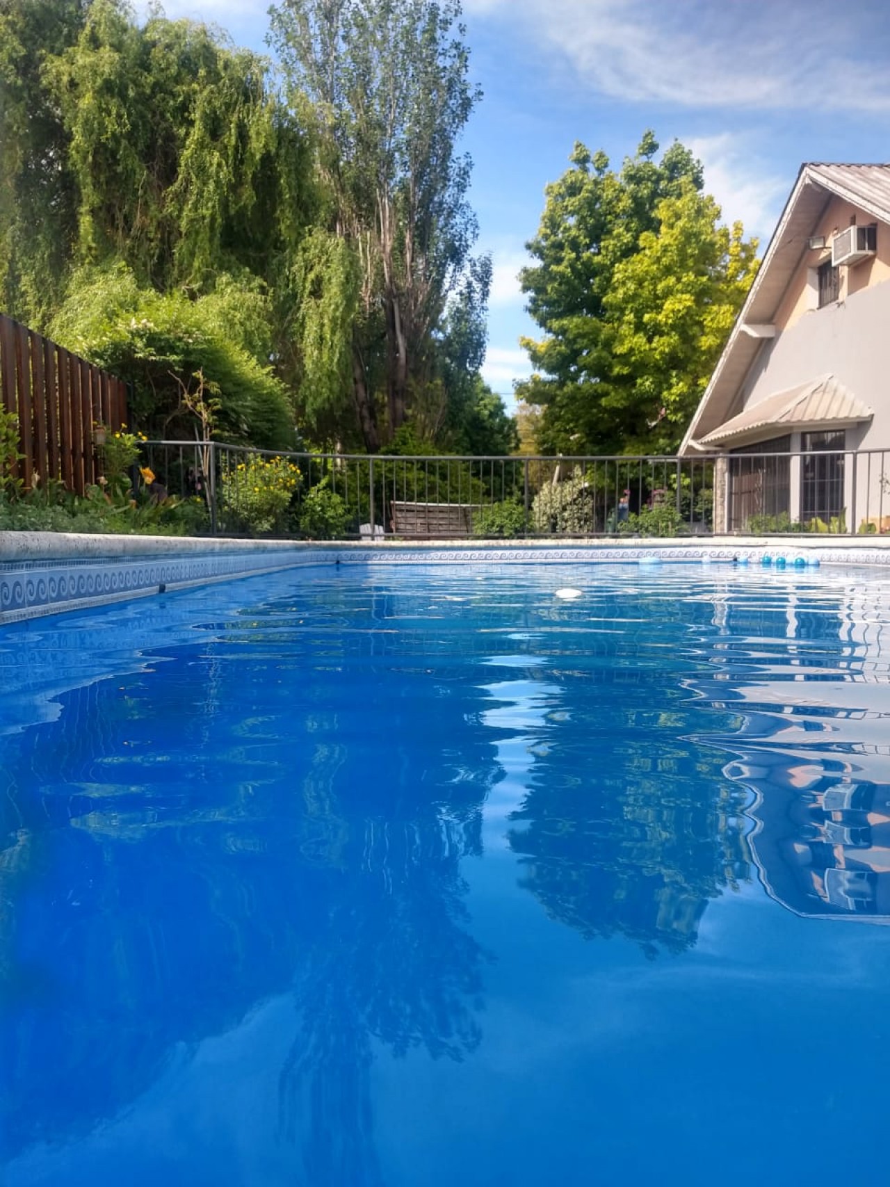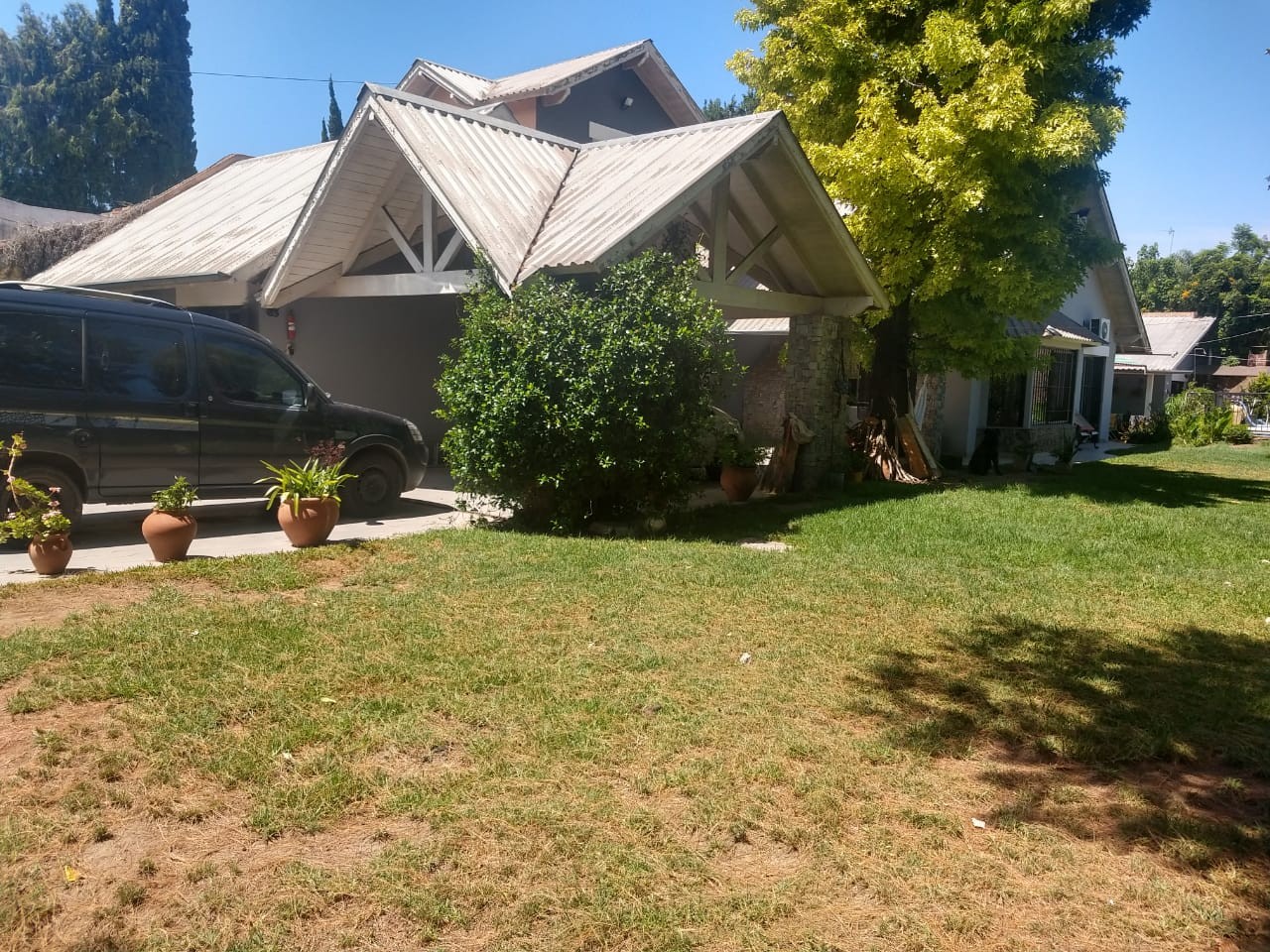 PB: Jardín al frente , espacio para 2 autos, 2 cocheras, entrada con recibidor, 3 dormitorios, 1 dormitorio en suite, cocina, living-comedor, toilette, living con hogar, baño, cocina totalmente amoblada, galeria, piscina de 10 mts x 5 mts, jardín, quincho con parrilla, horno de barro, mas departamento con baño en el fondo y guarda útiles.